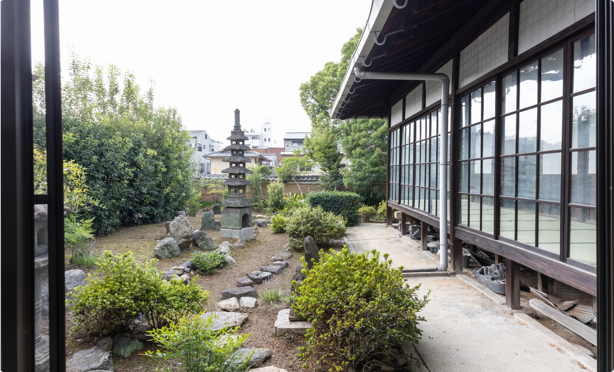 勝巖院は庭を「ケアの空間」として大切にしています。庭(を)・庭(で)・庭(と)・庭(に)というように、庭は生活の「助詞」として目的にも舞台にも支えにも機会にもなる、ゆとりのある場所です。街中にありながら、数歩奥へ入ればその喧騒から逃れることができる〈市中のかくれ寺〉として、庭をさまざまな形でひらいていきます。